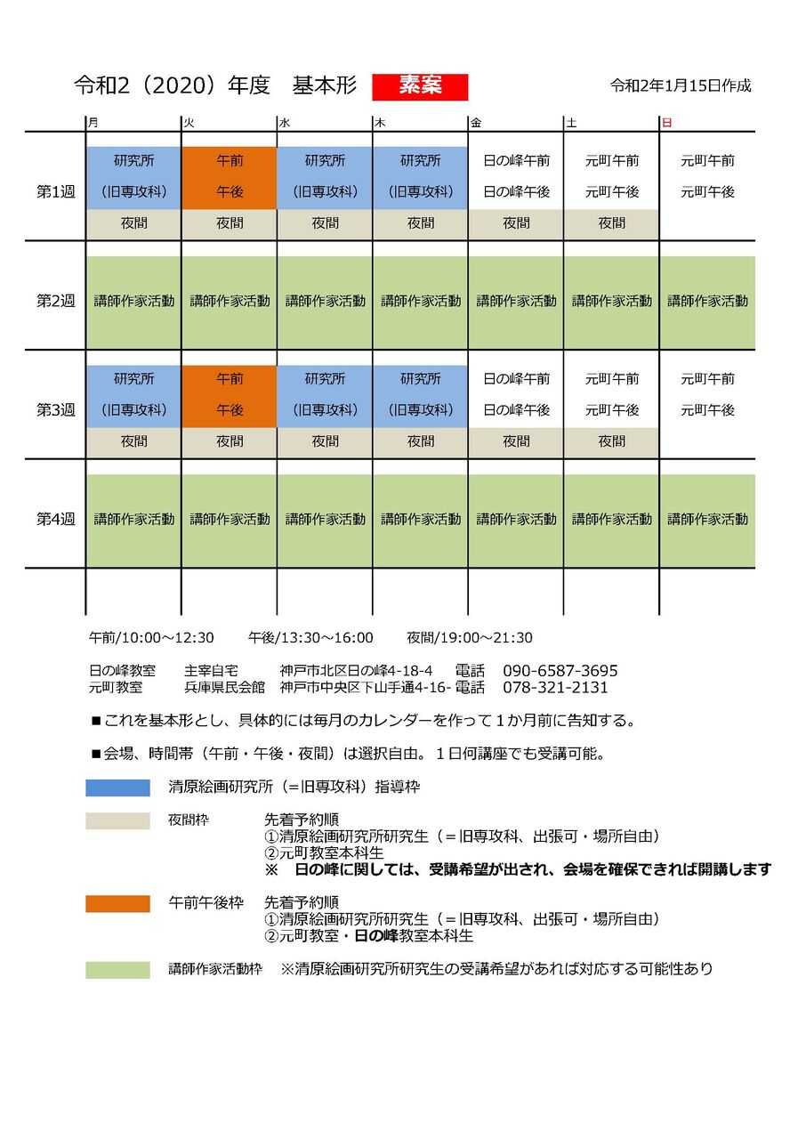 現在の本科を清原絵画教室とし、従来通り月4回まで受講可とします(追加受講も可能)。