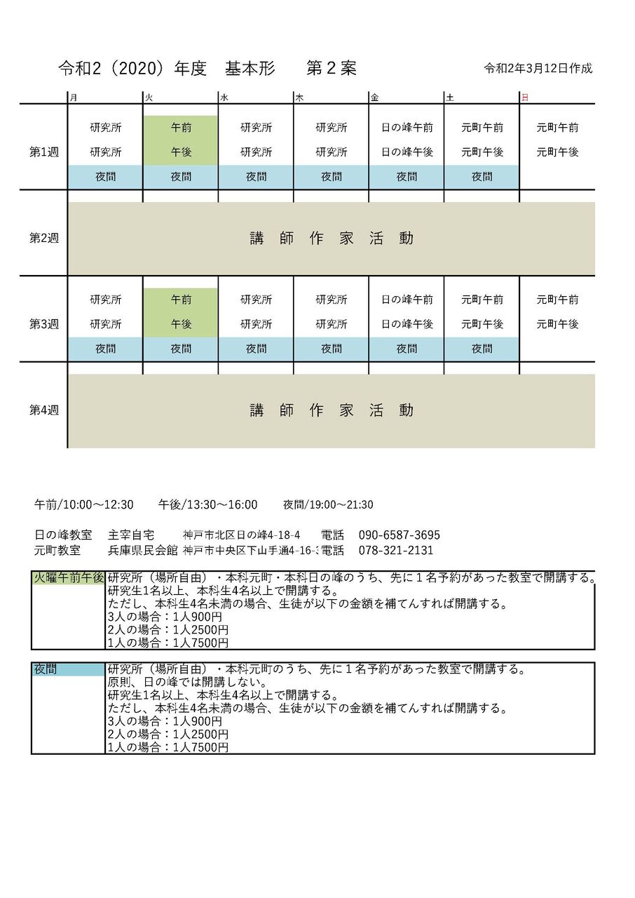 令和2年度基本カレンダー